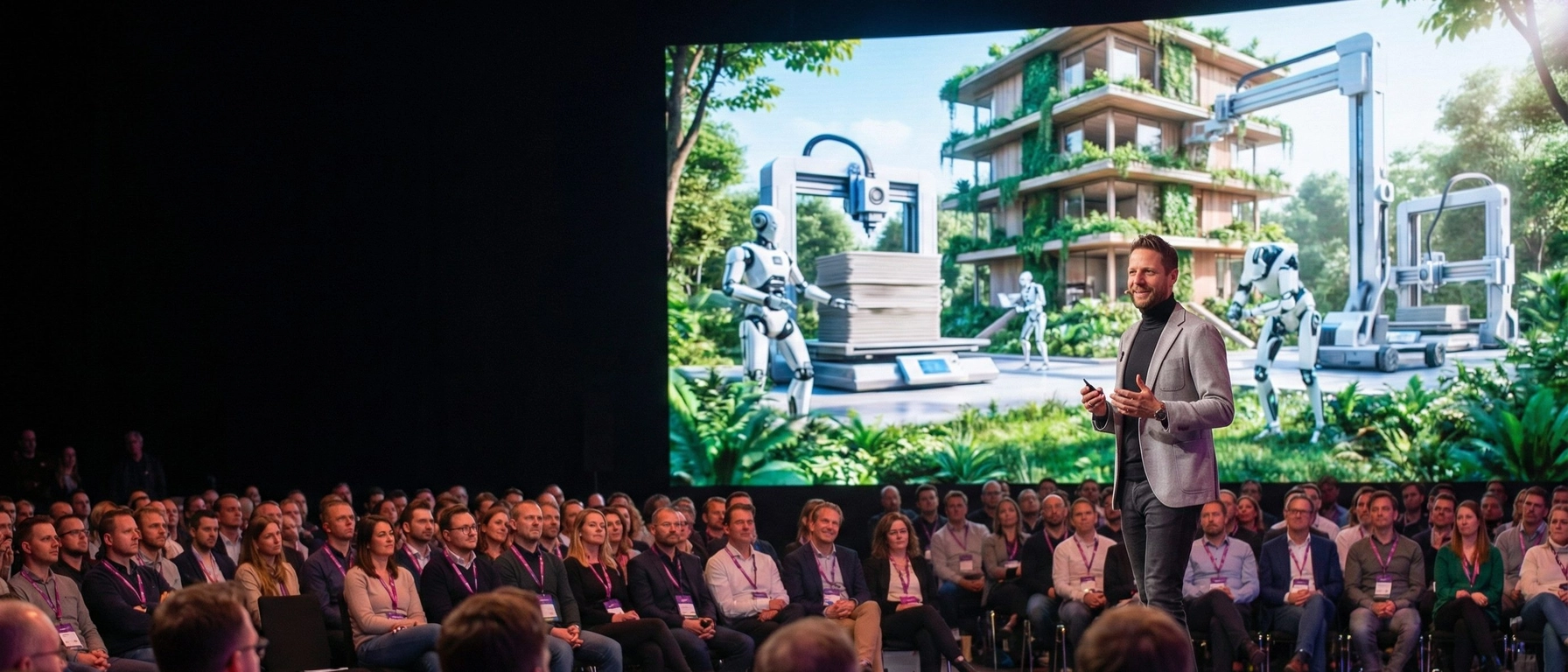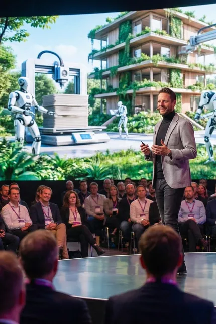 A strategic keynote for construction leaders on AI, project efficiency, safety, and human-centered innovation.