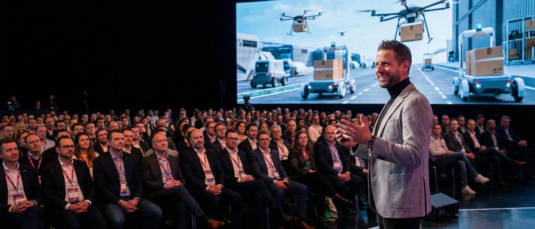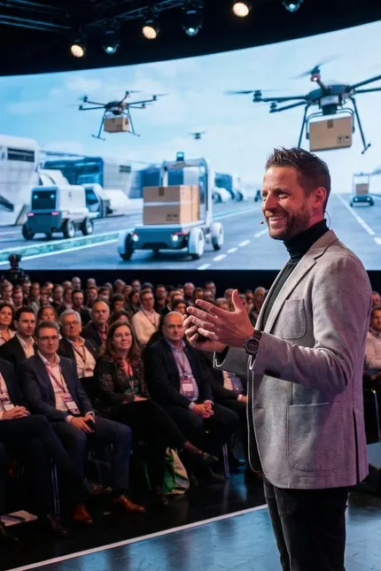 A strategic keynote for logistics leaders on AI, supply chain innovation, efficiency, and human-centered operations.