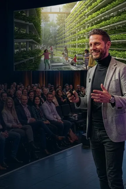 A strategic keynote for leaders on AI, environmental innovation, sustainable business, and human-centered solutions.